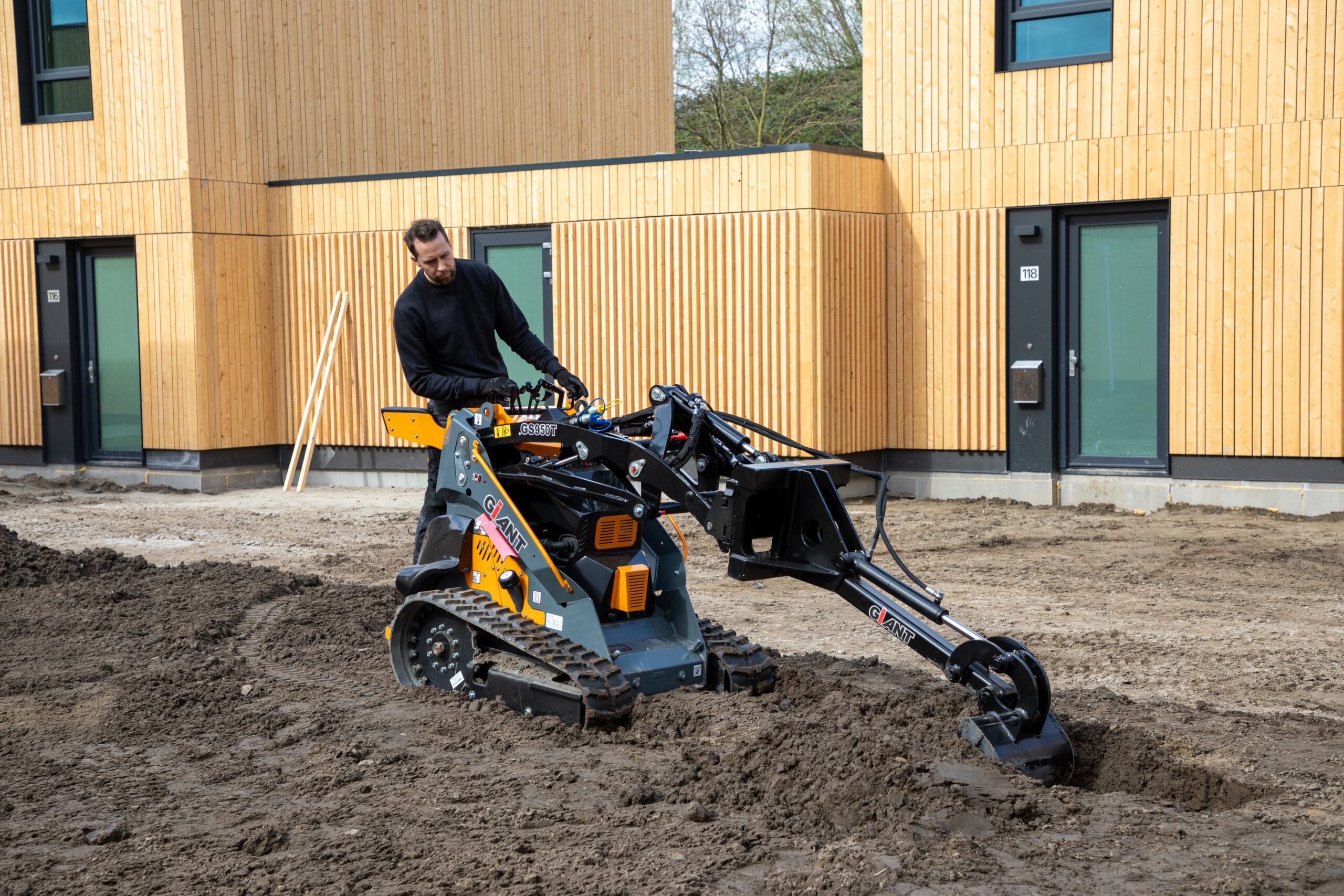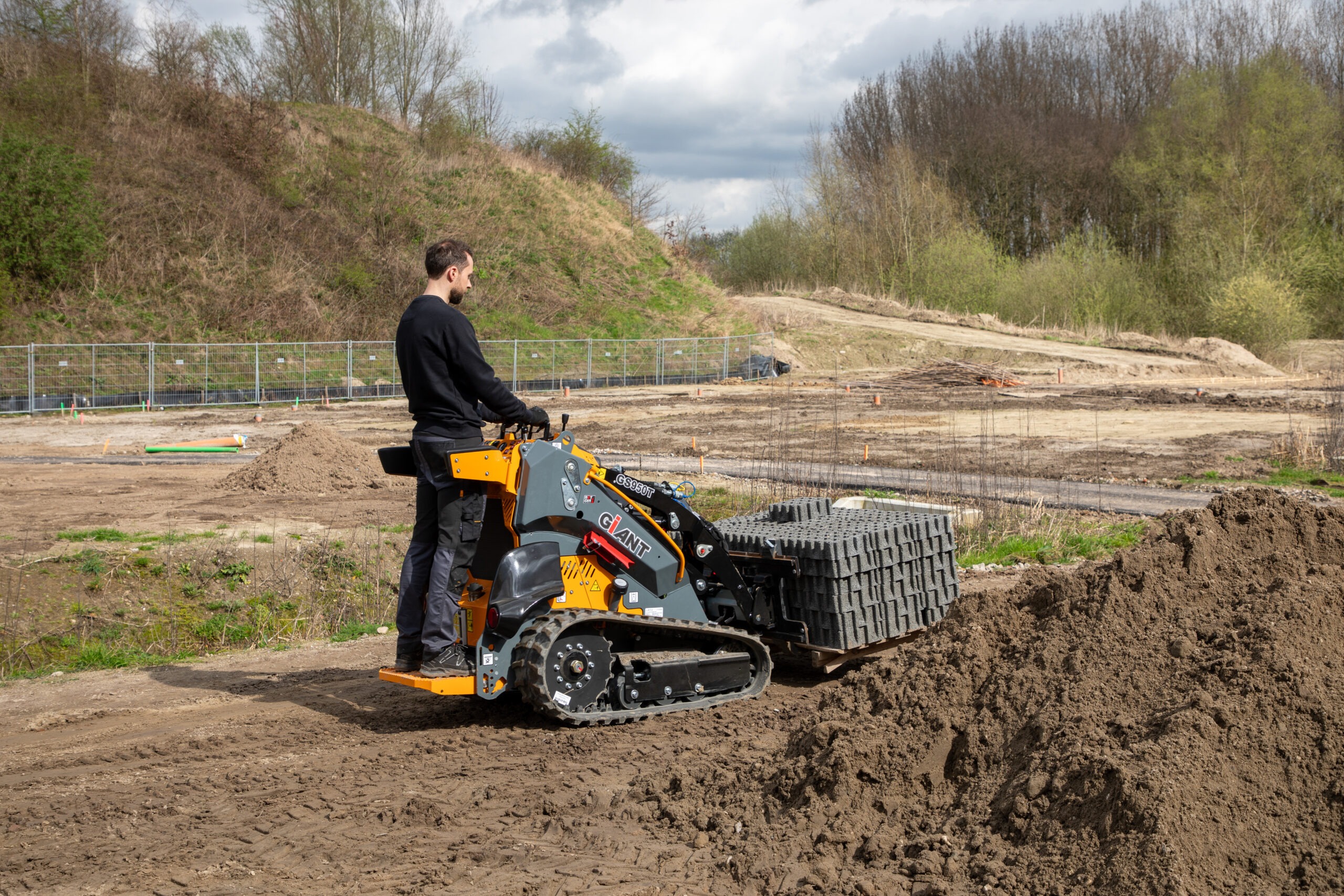 La Giant GS950TE est une mini chargeuse skid-steer 100 % électrique, montée sur chenilles pour offrir à la fois zéro émission, silence de fonctionnement et adhérence optimale sur tous types de terrains, y compris les sols instables. Compacte et maniable, elle conserve la robustesse et la polyvalence de la GS950T tout en intégrant une motorisation électrique moderne avec batteries lithium-ion.